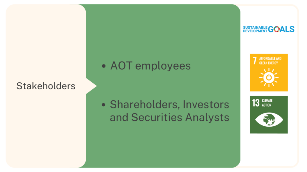 AOT’s ability to manage climate-related risks and pursue climate-related business opportunities in accordance with international standards will help enhance its corporate image and demonstrate its responsibility in addressing the climate crisis. This, in turn, will attract global investors and partners, contributing to sustainable long-term business growth.