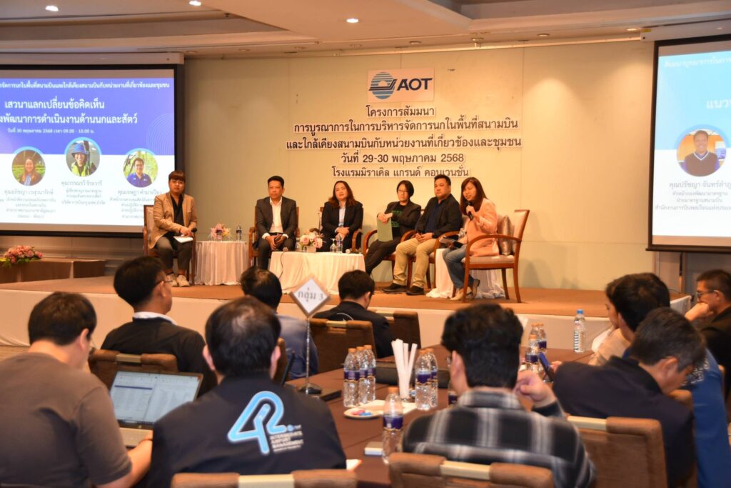 2. การเสวนา (Panel Discussion) ภายใต้หัวข้อ “แลกเปลี่ยนข้อคิดเห็นแนวทางในการพัฒนาการดำเนินงานด้านนกและสัตว์” โดยวิทยากรจากสำนักงานการบินพลเรือนแห่งประเทศไทย (กพท.) และผู้แทนสนามบิน เพื่อตระหนักถึงความเสี่ยงและผลกระทบจากอากาศยานชนนกรวมทั้งบทบาทและความรับผิดชอบของแต่ละหน่วยงานที่เกี่ยวข้องในการป้องกันและแก้ไขปัญหาอย่างมีประสิทธิภาพ